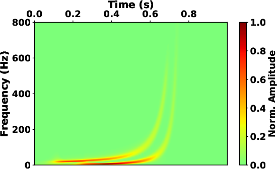 spans from 0.25 to 0.75 seconds. The S-transform provides a