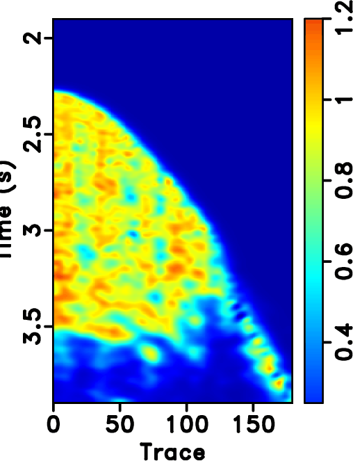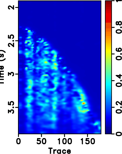 Figure 17. Field data example. Local similarity between the error sections with the true data using different approaches. (a) ![]() ![]() ![]() ![]() |