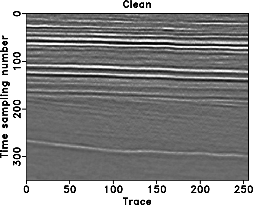 Our second field data example is a more complicated case. Figures 14a and 14b show the clean data and simulated noisy data, respectively. In this example, we use