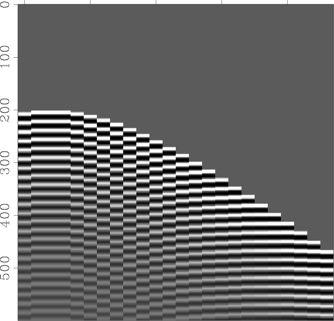 Figure 11. Insufficient spatial sampling of synthetic data. To better perceive the ambiguity of arrival angle, view the figures at a grazing angle from the side. |