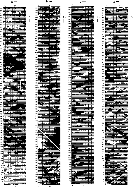 The results resemble the amplitudes, except that the results become noisy when the amplitude is low or where a ``leg jump'' has confounded the measurement. Figure 9.4b clearly shows that the disturbing influence on timing occurs at the same depth as that which disturbs amplitudes.