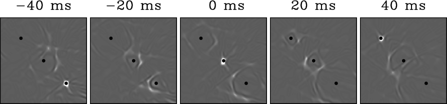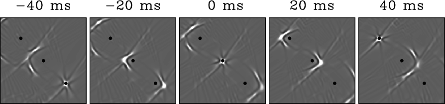 reconstructed in reverse time around the target location. From left to