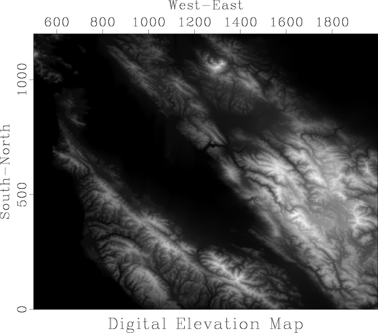 Figure 1. Digital elevation map of the San Francisco Bay area. |