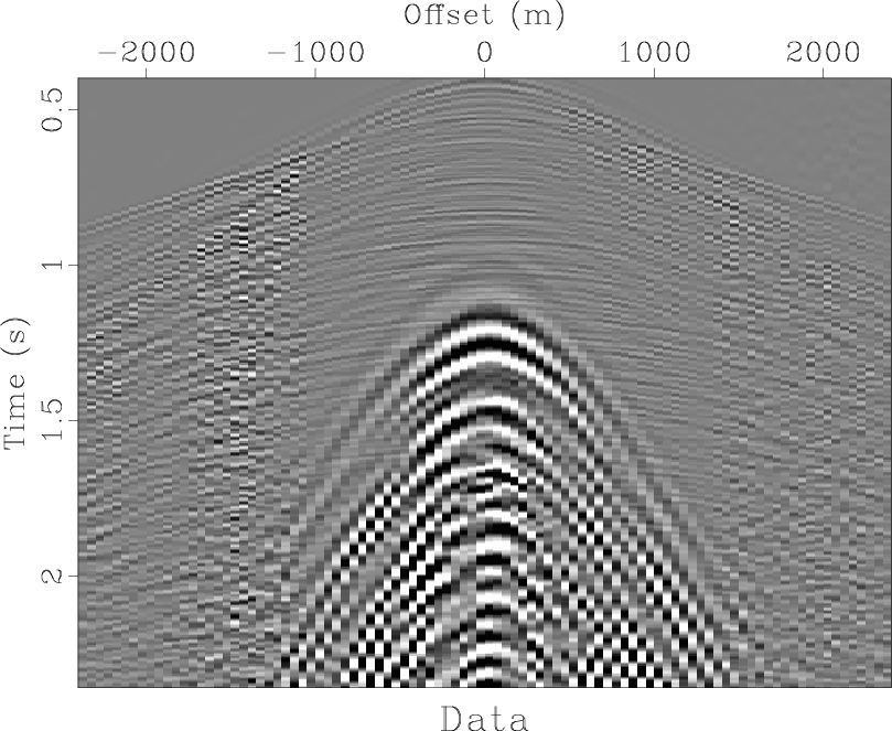 Figure 1 shows a section out of a seismic shot record collected over sand dunes in the Middle East. The data are contaminated by ground roll propagating in the sand. A major data analysis task is to separate the signal (reflection waves) from the noise (surface waves).