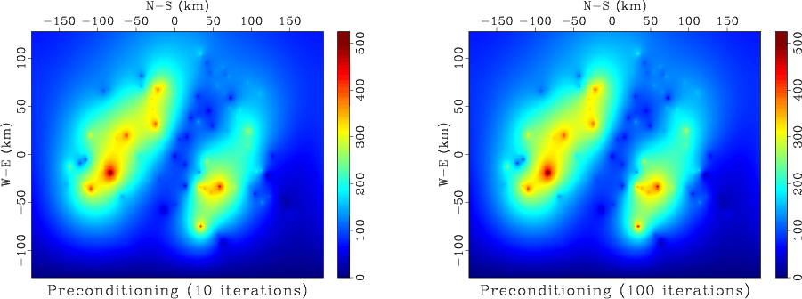 Figure 9 shows the interpolation result using conjugate-gradient optimization with equation (6) after 10 and 100 iterations. The corresponding correlation analysis is shown in Figure 10.