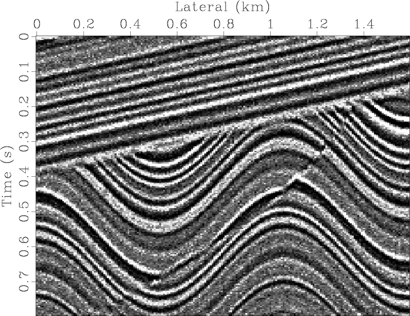 The dip of seismic events controls the trend of the constructed seismic model; thus, next, we need to apply filtering along the trend. The selected filtering method must simultaneously suppress the seismic noise and protect structural information.