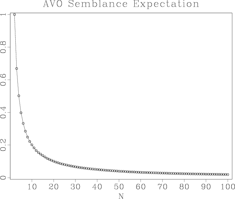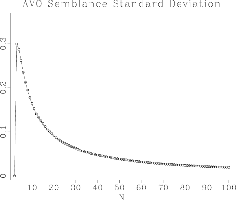 of variance) of the random noise semblance decrease at the rate of