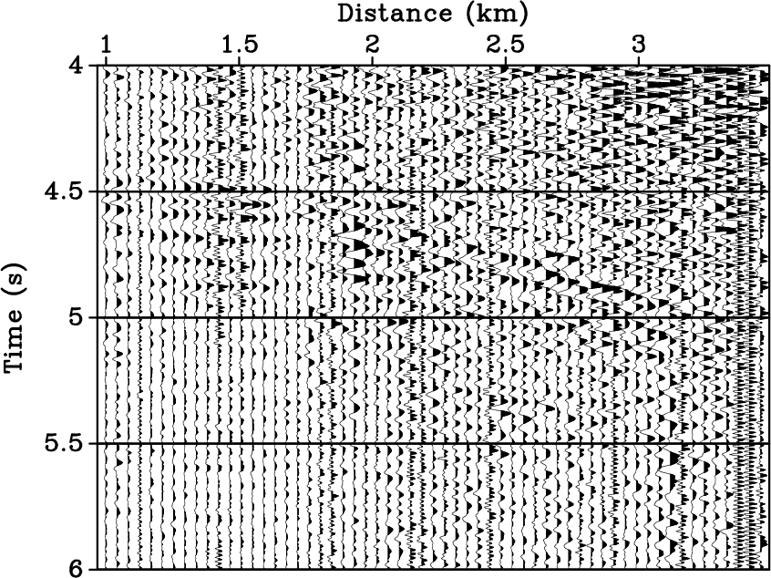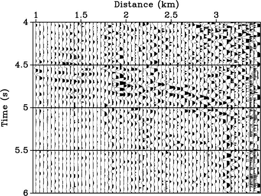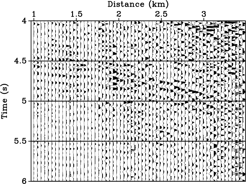 gather that has 59 traces and an average group interval of 42 m. The sample frequency is 4 ms, and the sample number is 500. In