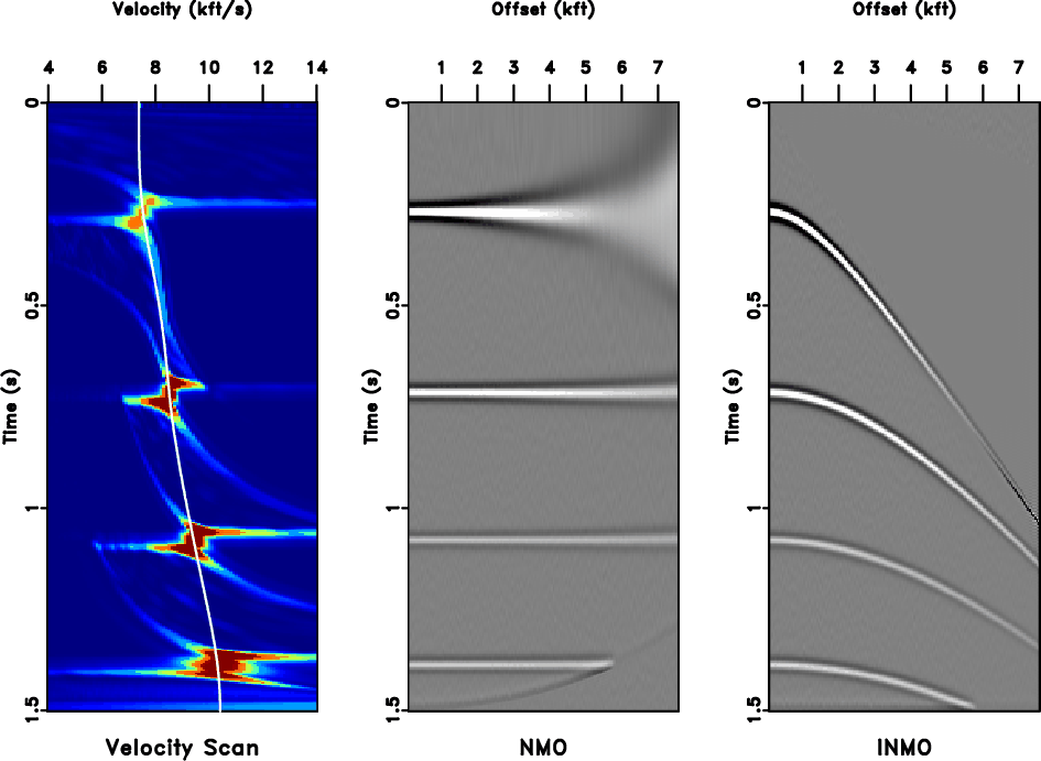 Two cases are shown for inverse NMO: one where