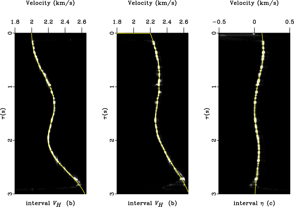 estimated NMO (a) horizontal velocities (b) and the anellipticity (c)