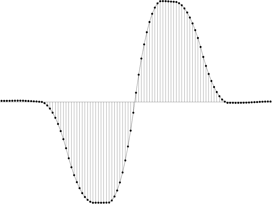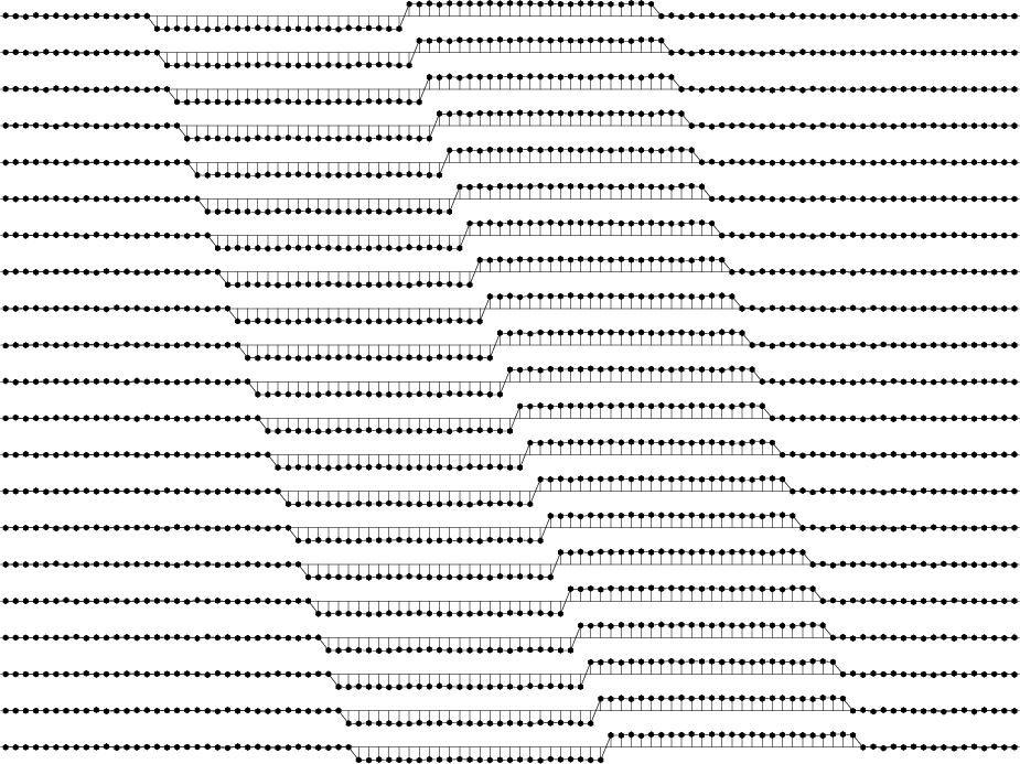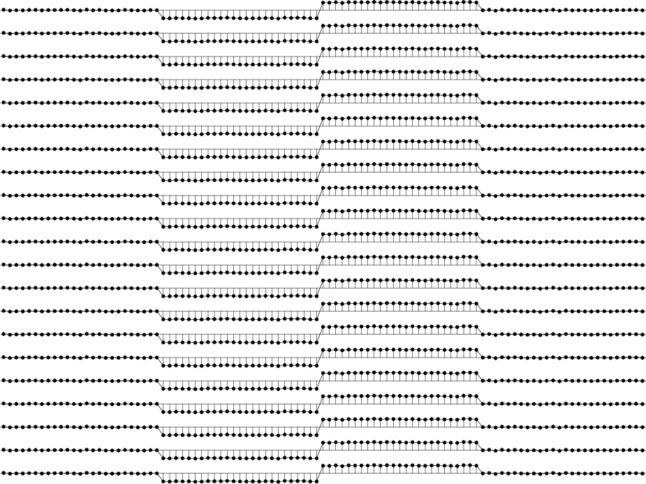 To better understand what is happening in the process of smoothing, let us convert 1-D signal into a 2-D signal by first replicating the trace several times and then shifting the replicated traces with respect to the original trace (Figure 4). This creates a 2-D dataset, where each sample on the original trace is surrounded by samples from neighboring traces.