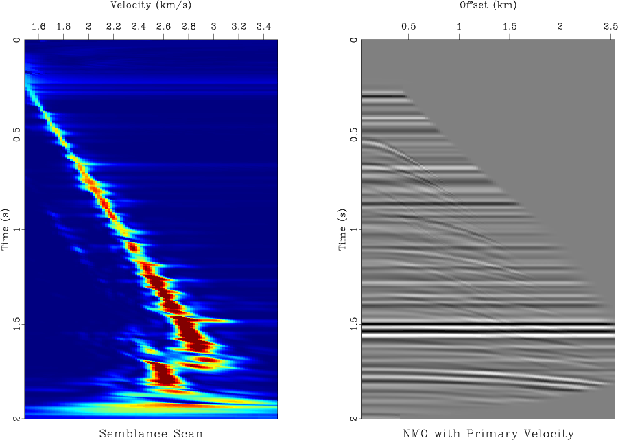 Plot('nmo','grey title="NMO with Primary Velocity" ')