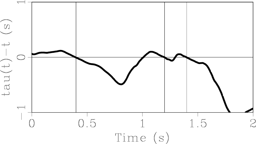 are of interest; rather, only the zero crossings from positive to negative values yield valid traveltimes. Positive maxima of