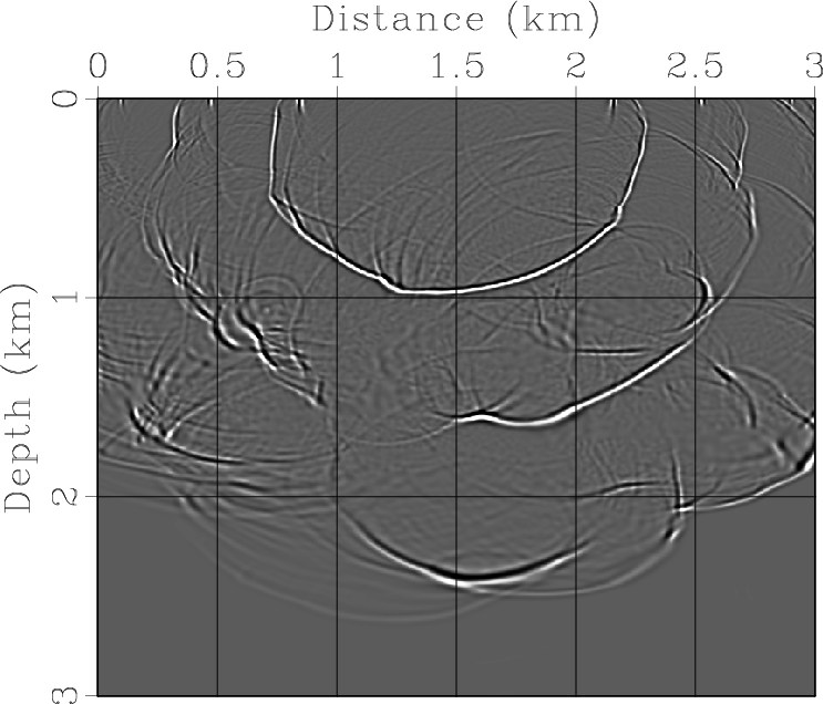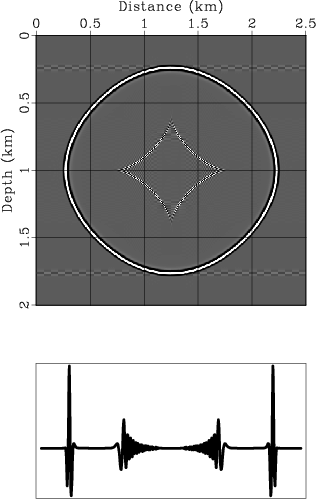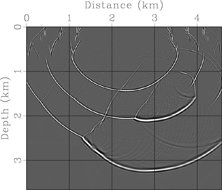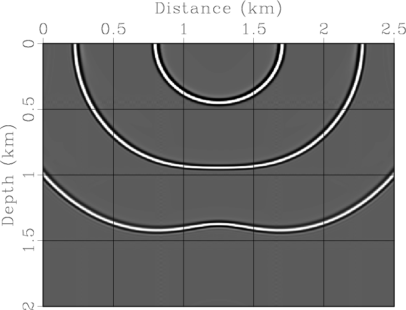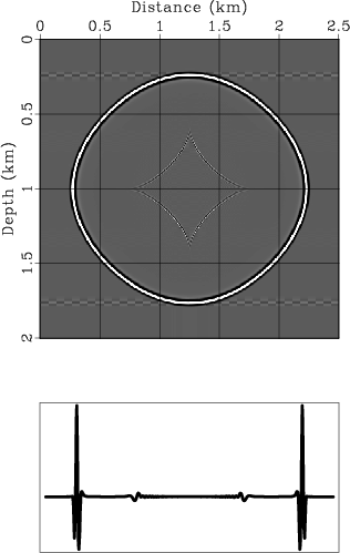Migration images obtained from this section are superpositions of the Green's functions due to a point source located at the center on the surface.