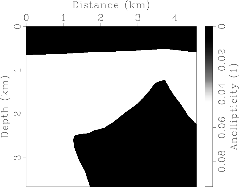 For example, the anisotropic parameters of the SEG/Hess model are shown in Figures 7(a) to 7(c).