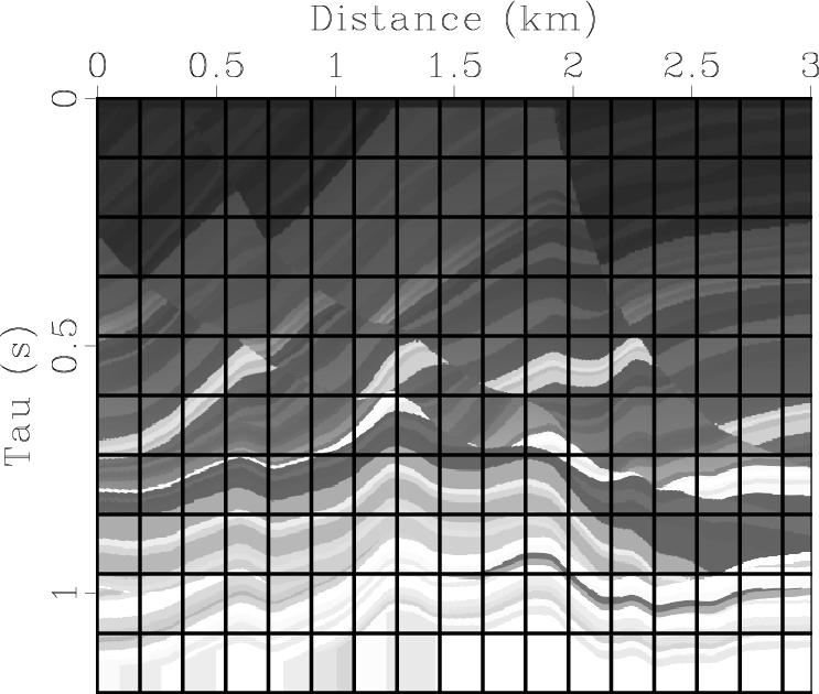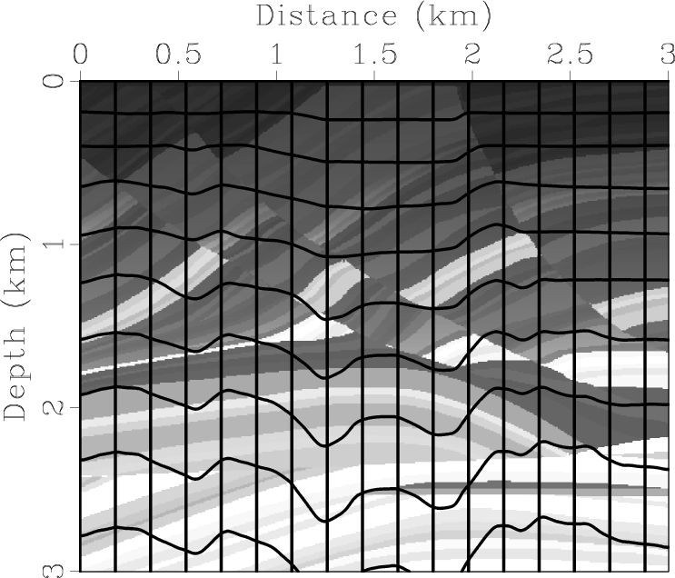 In Figure 6(a), we show a section of the isotropic Marmousi velocity model. Since the vertical time derived from this velocity has very ragged curvatures that may pose stability difficulties for the
