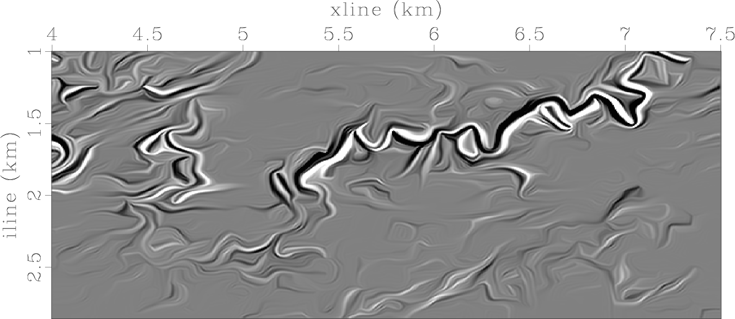 low-amplitude events are also preserved and highlighted including the fault feature (in-lines