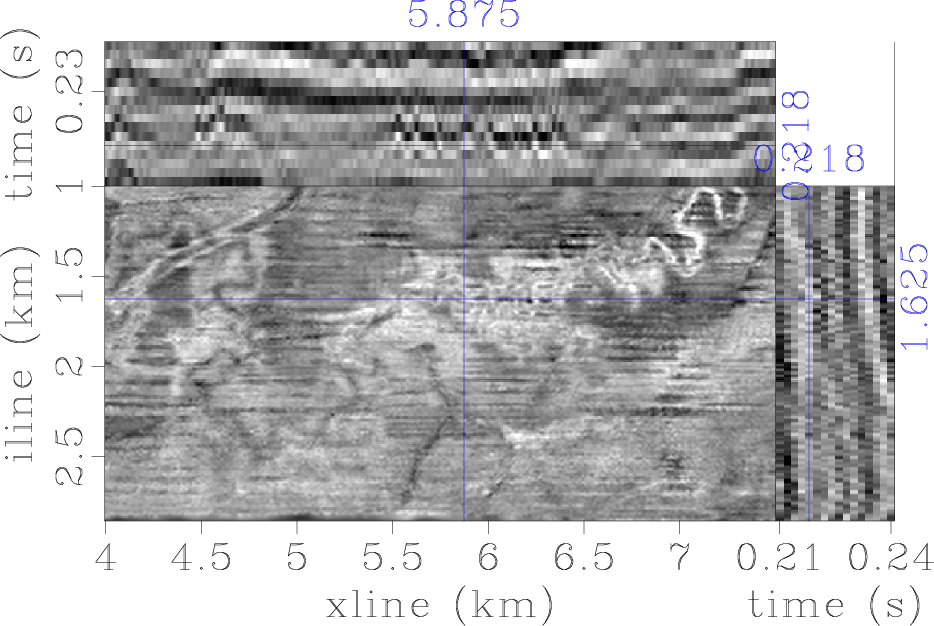 Figure 6. High-resolution 3D marine seismic dataset from the Gulf of Mexico: stacked volume. |