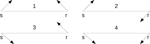 Figure 2. All four branches of DSR eikonal equation from different combination of upward or downward pointing of slowness vectors. Whether the slowness vector is pointing leftward or rightward does not matter because the partial derivatives with respect to ![]() ![]() |