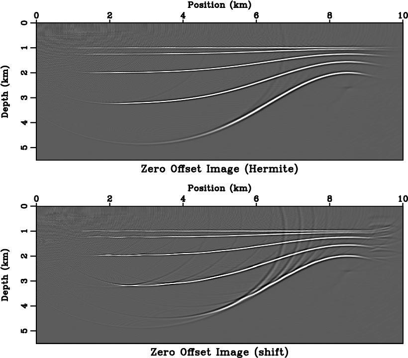 uniform spacing 0.5 km, and migrate synthetic zero-offset data. The interpolation of source-derivative