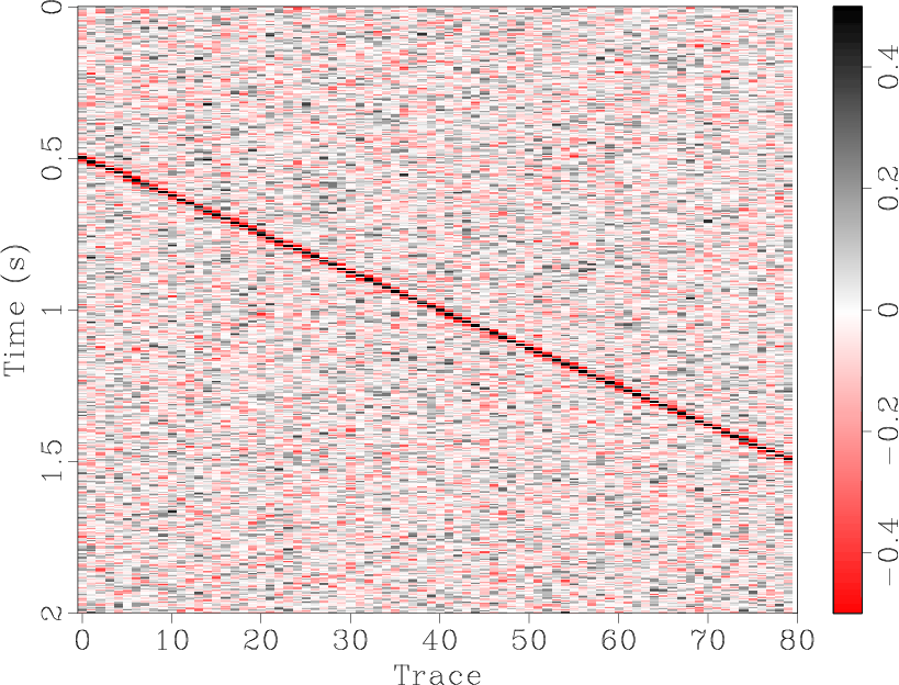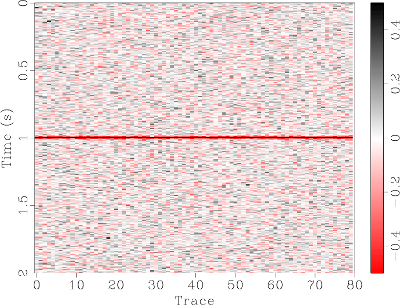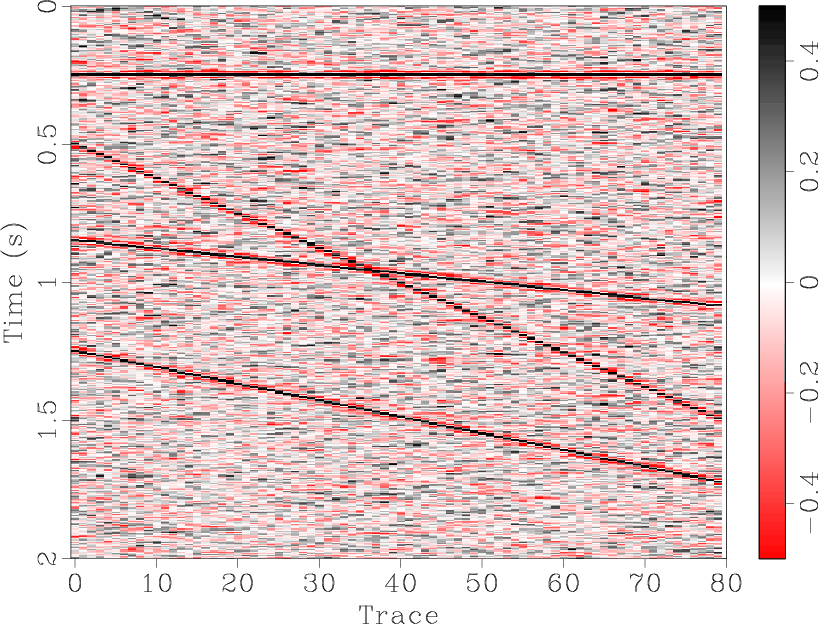 ![]() | Random noise attenuation by ![]() ![]() | ![]() |