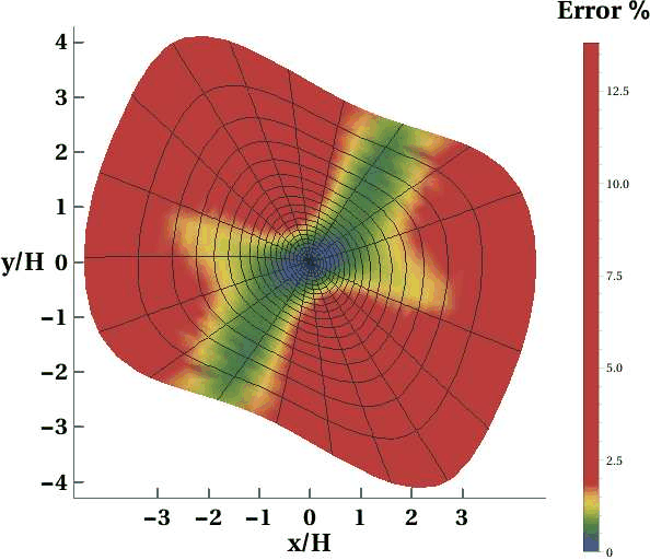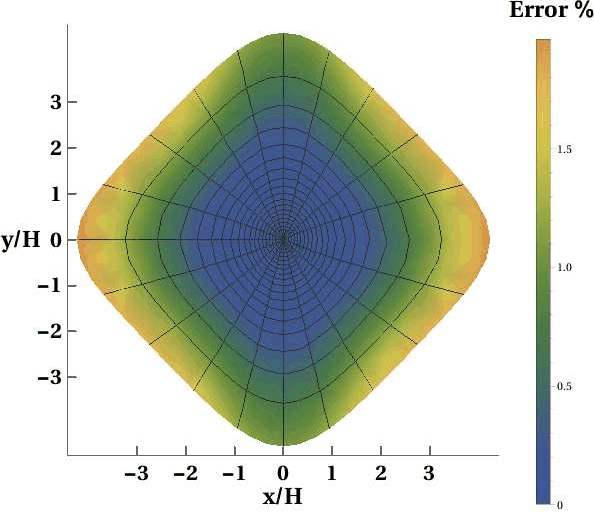 Figure 9. Error plots of the approximation by Xu et al. (2005) in a) the rotated homogeneous orthorhombic layer (Layer 1) and in b) the three-layer orthorhombic model with azimuthal rotation in sublayers plotted under similar color scales as the originals when 20% error is introduced in known azimuthal angles. One can observe significantly higher errors compared with the original ones in Figures 3c and 5c. |