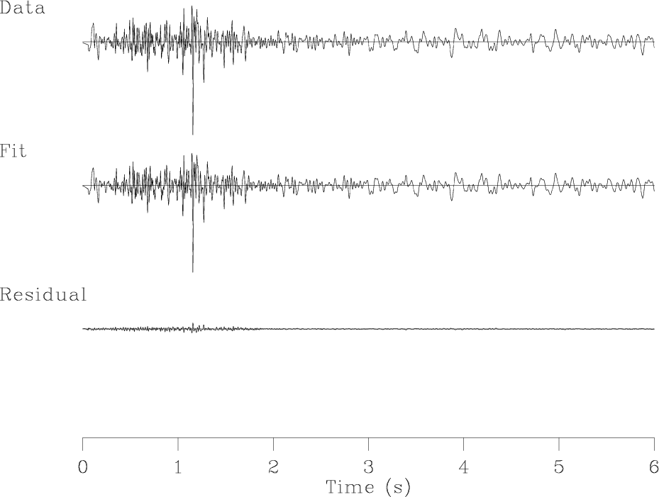 Figure 15. Residual error after fitting seismic data from Figure 14 with two components shown in Figure 16. |