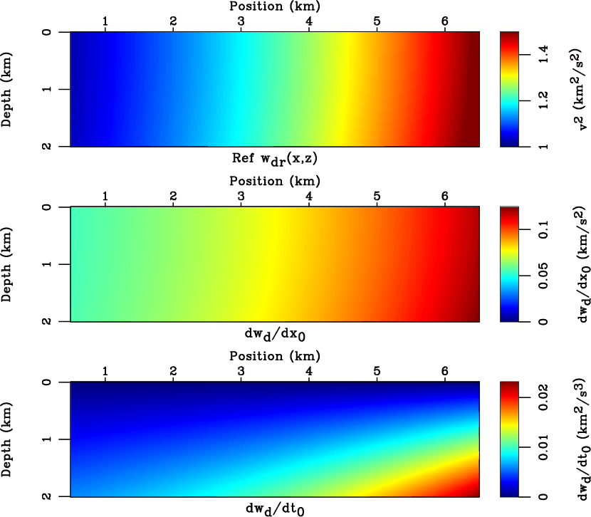 Figure 3. The true velocity squared (top) of the linear sloth model (equation 22). Analytical