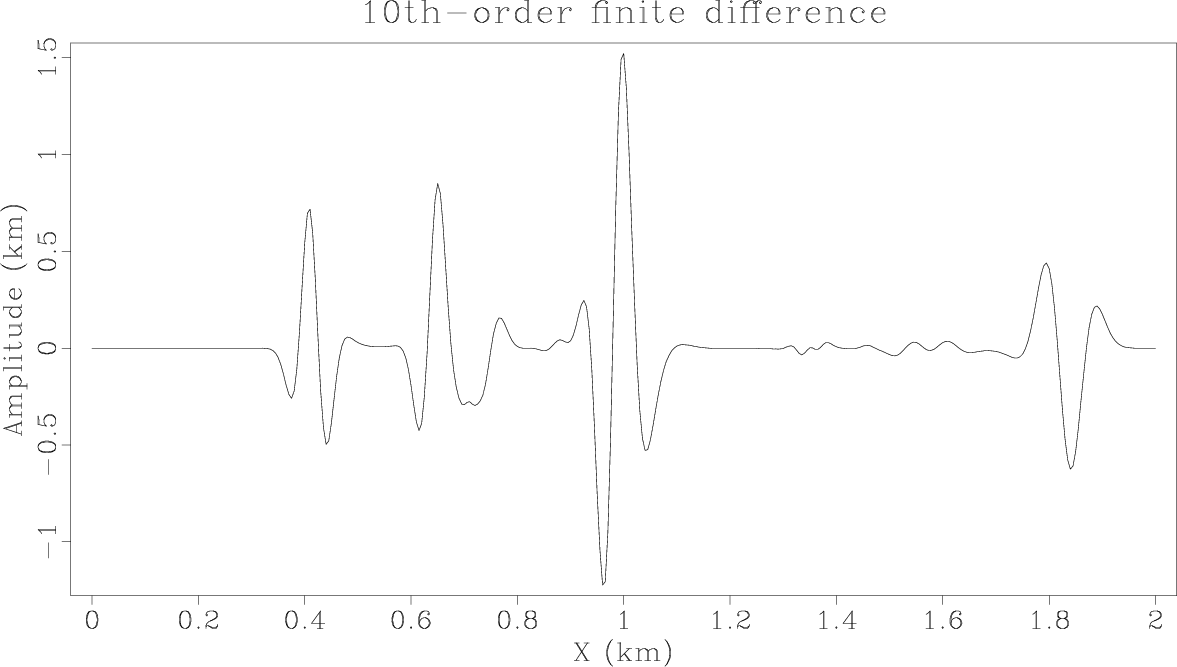 Figure 3. Vertical components of the elastic wavefields at the time of 0.6 s synthesized using three schemes with the same spatial sampling |