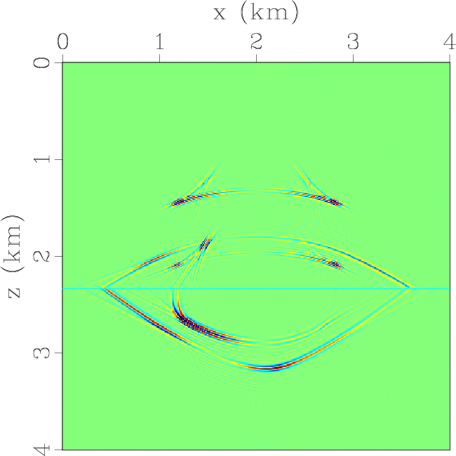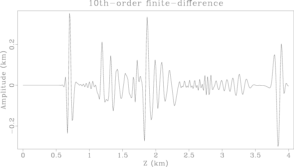 Figure 2. Vertical slices through the vertical components of the synthetic elastic wavefields at |