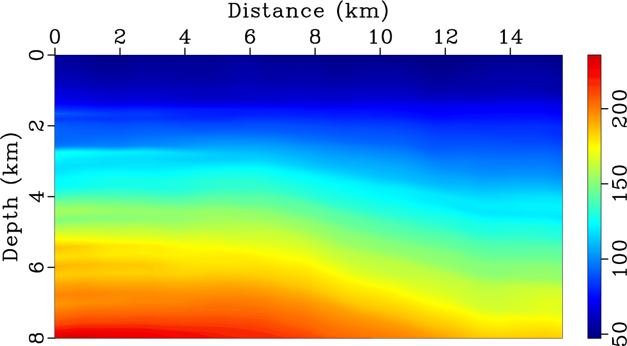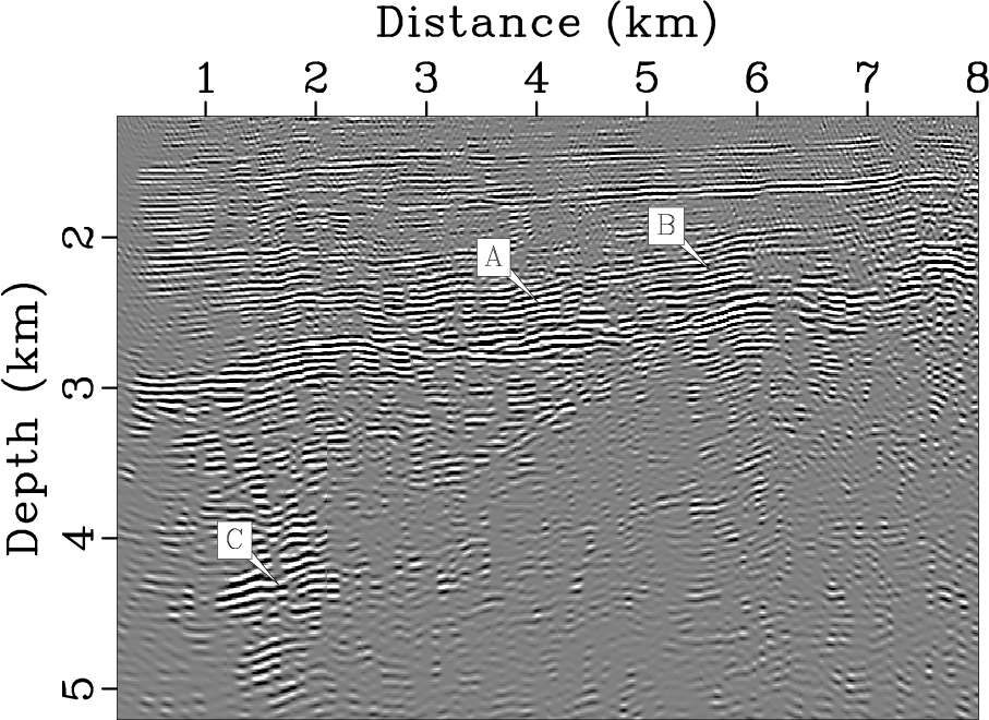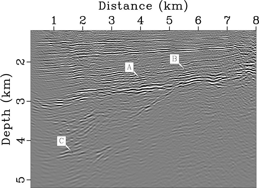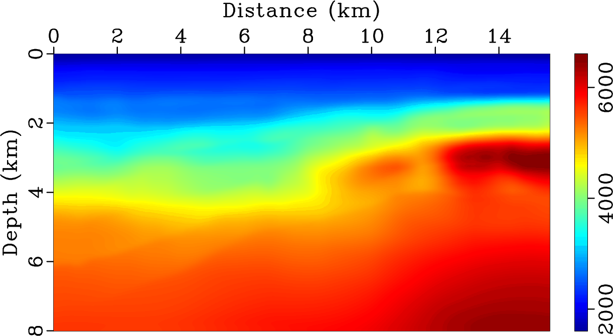 The field data example shown in Figures 9-11 aims to further verify the feasibility and applicability of the proposed package. Velocity and models are presented in Figure 9, which were obtained by migration velocity analysis (Sava and Vlad, 2008) and